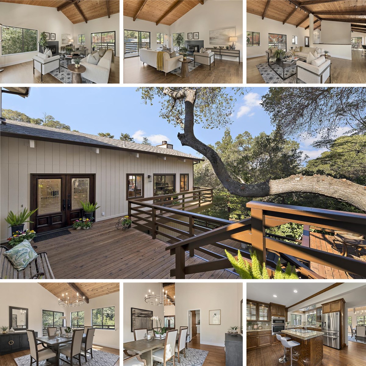 Nestled in Devonshire Canyon, this thoughtfully designed home offers privacy and openness with approximately 3,900 square feet of living space and decks on every level inviting year-round enjoyment of canyon setting. Main level is ideal for everyday living and entertaining, featuring vaulted beam ceilings, hardwood floors, and living room with fireplace that flows seamlessly into dining room with wet bar and access to a wraparound deck. Kitchen offers abundant cabinetry, center island with cooktop, breakfast bar seating flowing into a step-up family room with additional dining space, while a powder room completes this level. Second level features a primary suite with private deck, fireplace, dual closets, and a spacious bath with dual sinks, jetted tub, and separate shower, along with a second bedroom, full bath and laundry room. Two additional bedrooms and a full bath are located on third level. A bonus room with separate entrance and bathroom offers flexible space ideal for a home office, gym, or studio. Additional features include an oversized two-car garage, fresh interior and exterior paint, updated lighting, and additional parking on a separate street. Located in San Carlos, The City of Good Living, near dining, boutique shopping and highly regarded San Carlos schools.